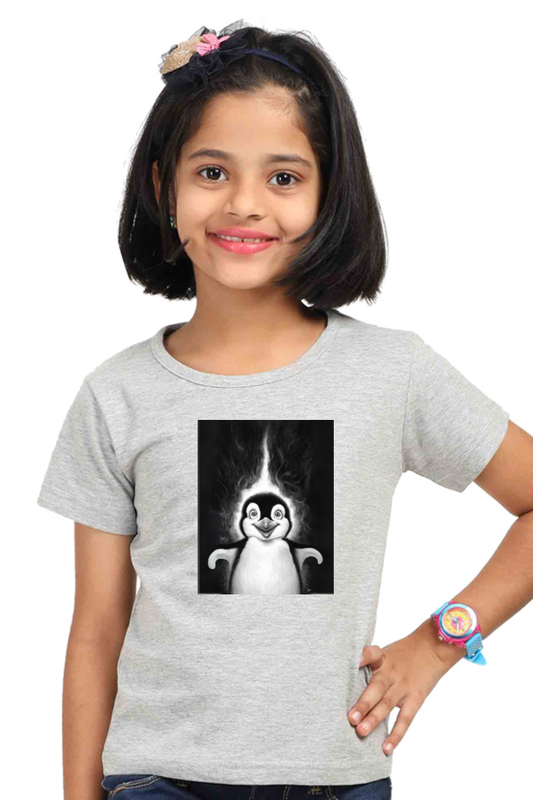 Girl's Round Neck Half Sleeve T-Shirt - "The Penguin" Design