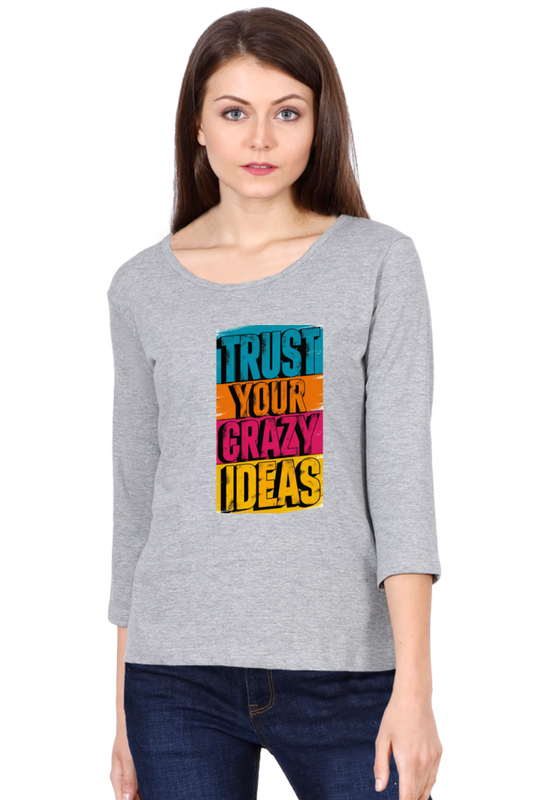 Women's Full Sleeve T-Shirt - "Trust Your Crazy Ideas" Quote Design