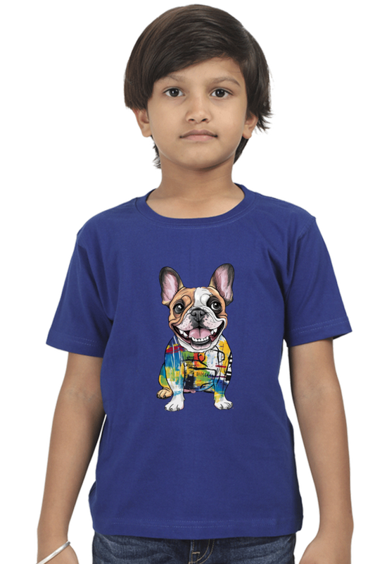Boy's Round Neck Half Sleeve Classic T-Shirt - "Modern art dog" Design