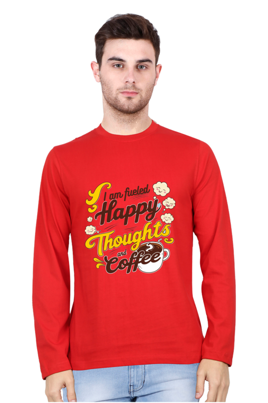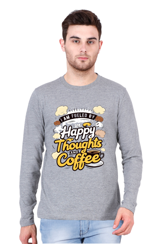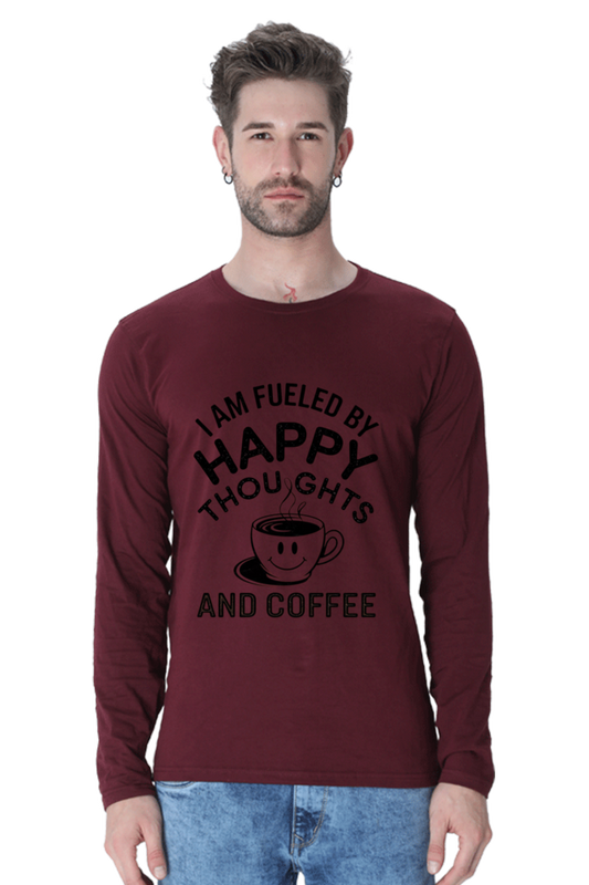 Men's T-Shirt - "Fueled by Happy Thoughts and Coffee" Design